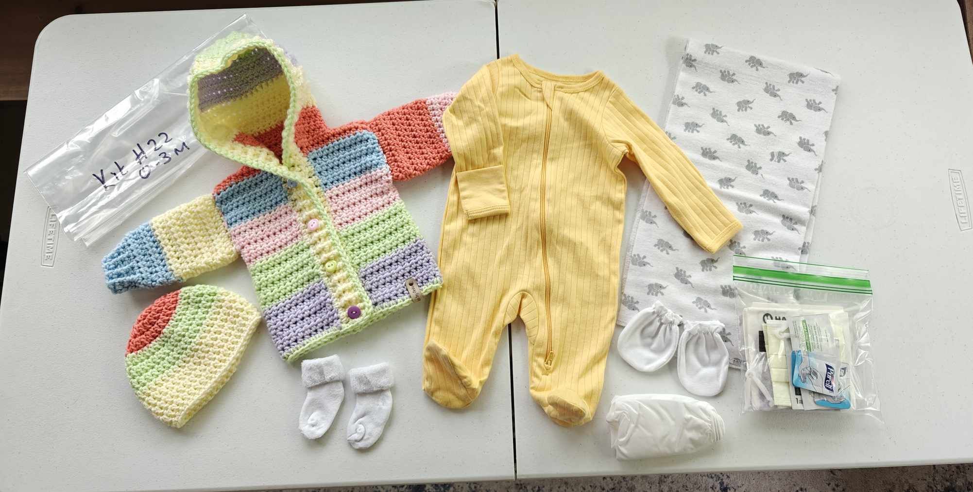 As the project evolved, I decided to expand my efforts and assemble complete care packages for newborns. Each package includes: