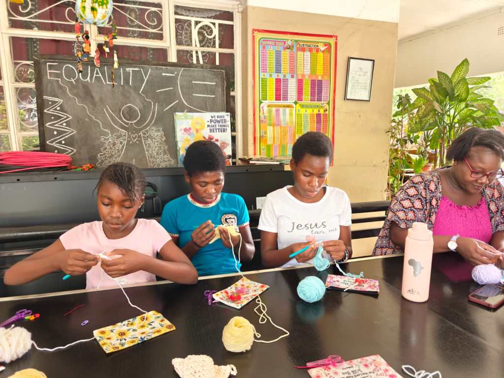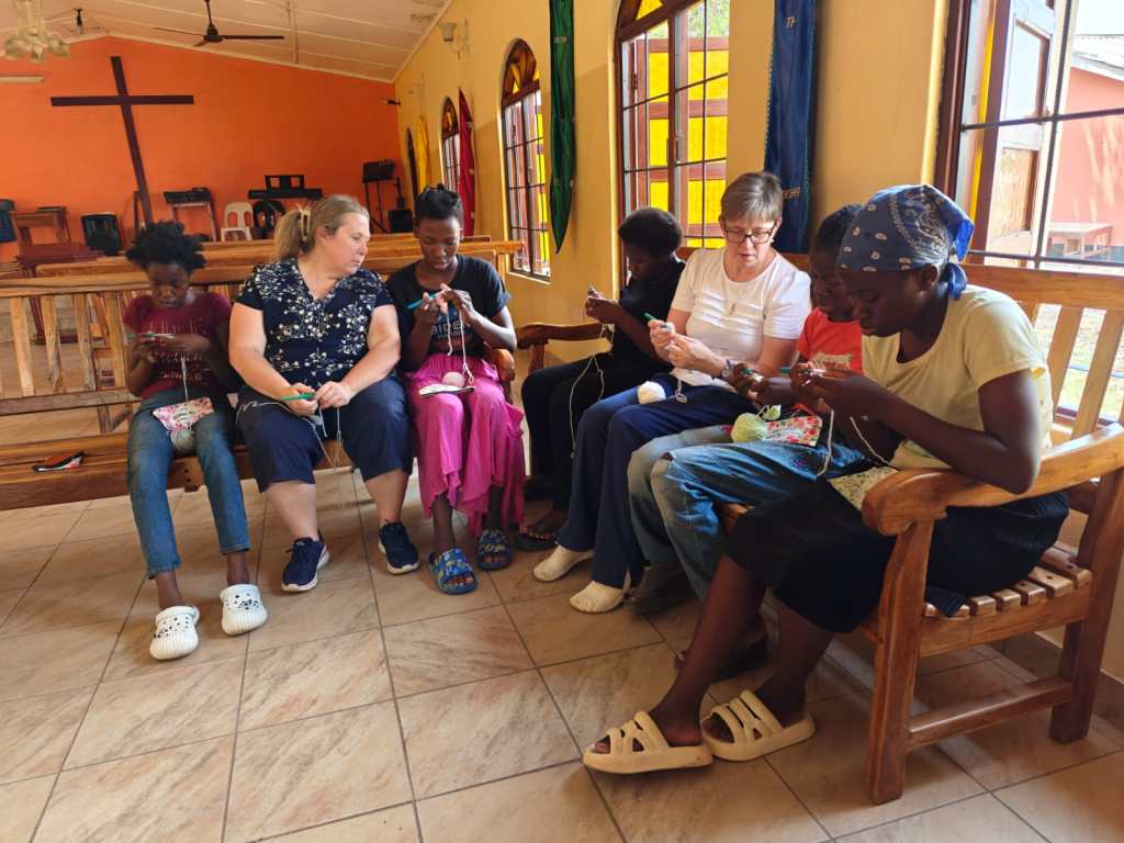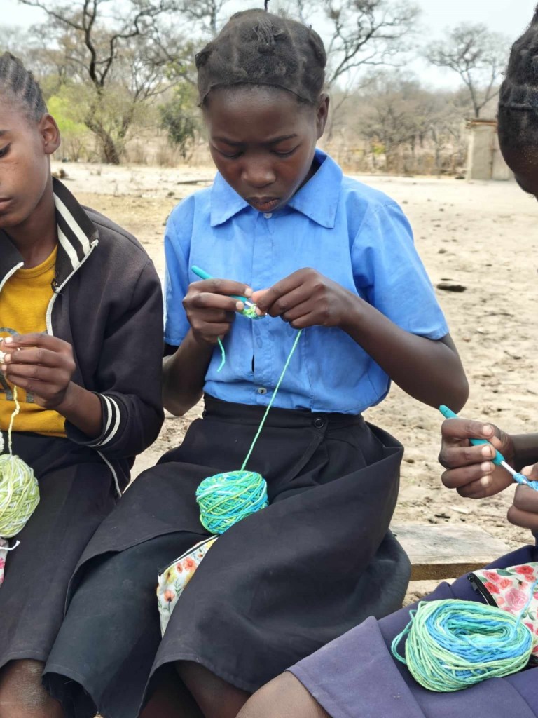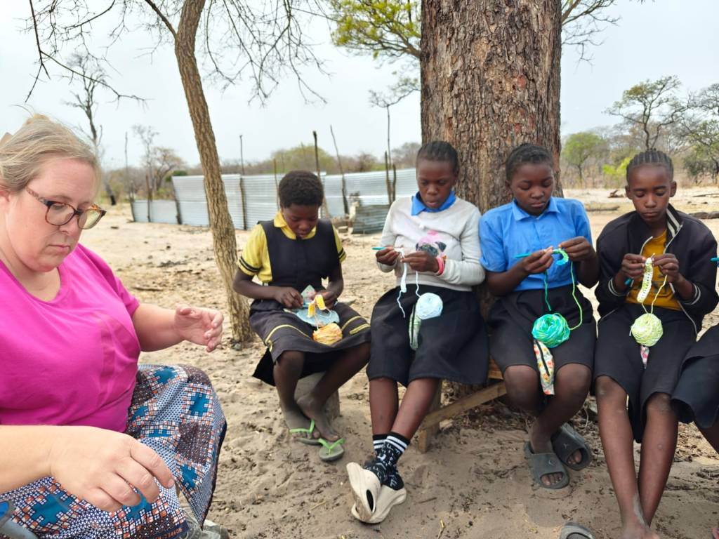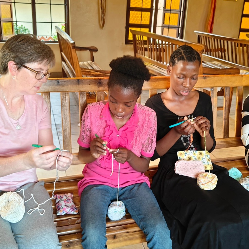 Though the focus of Chileleko Crochet is on rural areas in southern Africa, Anita has also had some opportunities to share her gifts with groups in more urban settings. In Zambia, she led crochet lessons in a local deaf school near where the missionaries live, and also in a local children’s home.