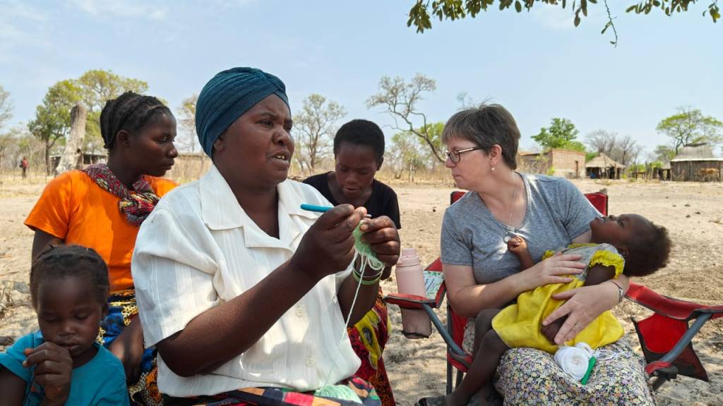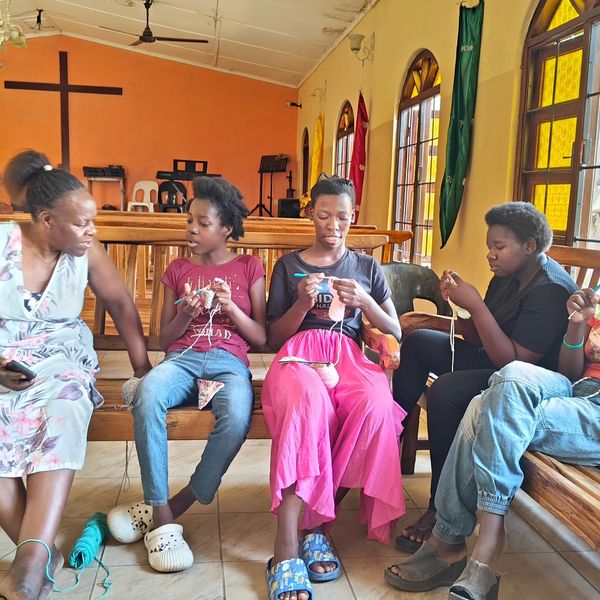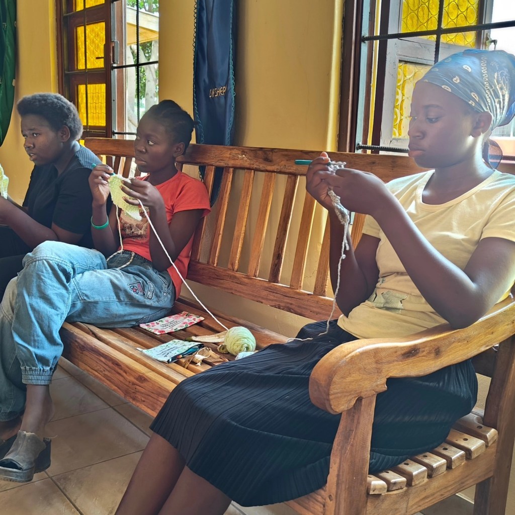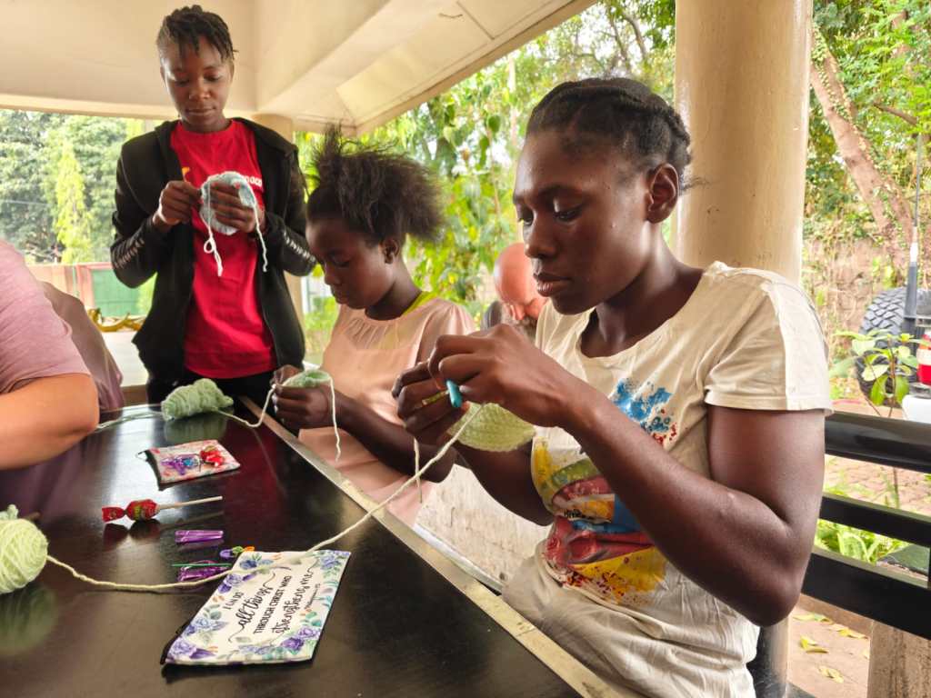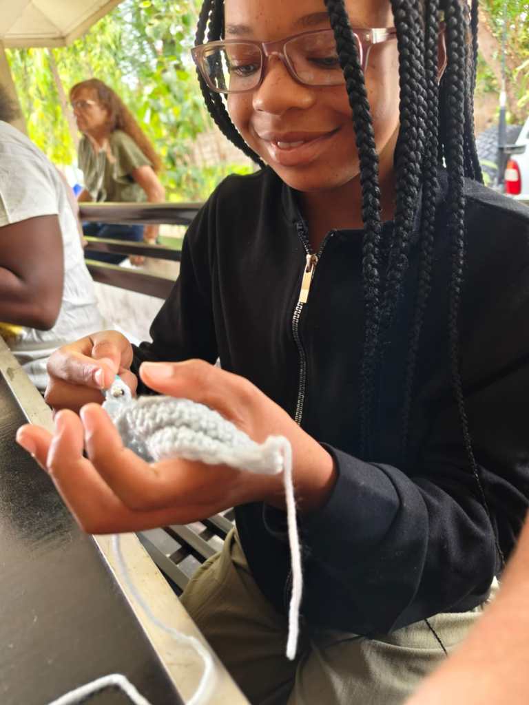 Though the focus of Chileleko Crochet is on rural areas in southern Africa, Anita has also had some opportunities to share her gifts with groups in more urban settings. In Zambia, she led crochet lessons in a local deaf school near where the missionaries live, and also in a local children’s home.